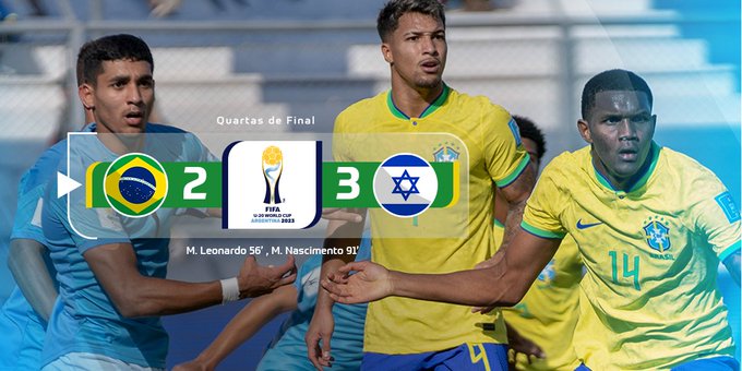 A campanha do Brasil no Mundial sub-20 de futebol masculino chegou ao fim neste sábado (3), após derrota por 3 a 2 para Israel no Estádio Bicentenário, em San Juan (Argentina), pelas quartas de final da competição.