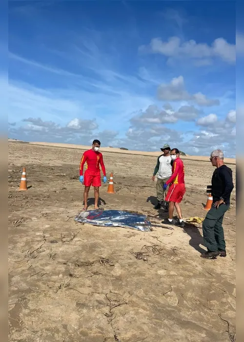 localizado por populares por volta das 7h15, às margens da praia, no