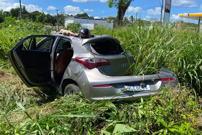 de cor prata que capotou no quilômetro 253 da BR-316, em Pilar. O